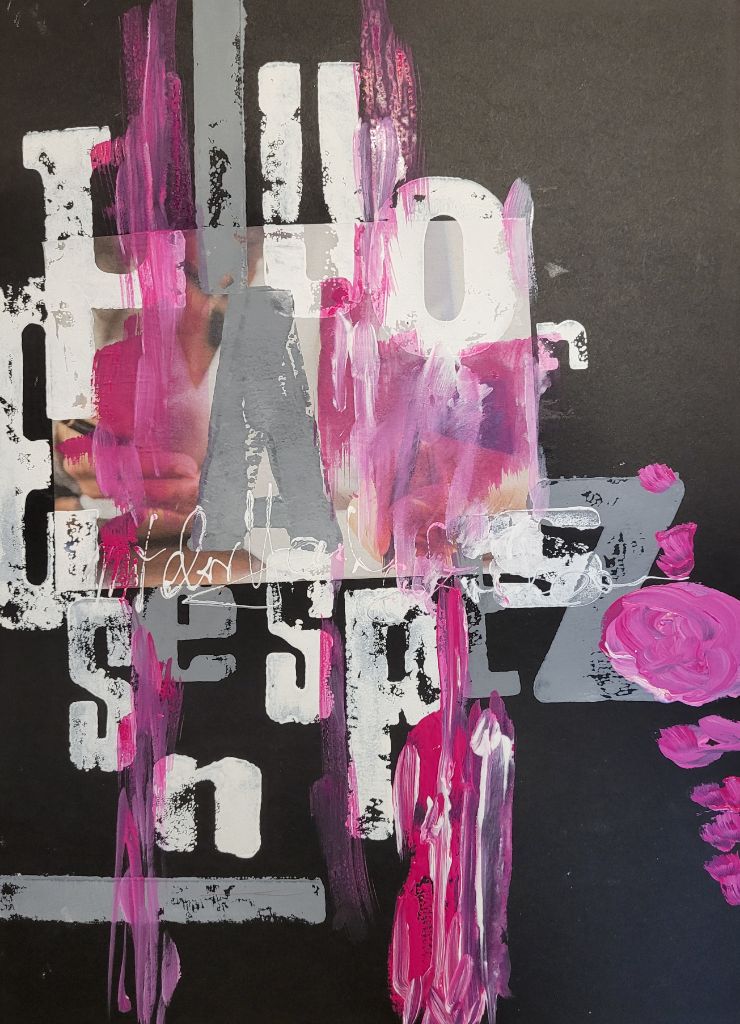 In meiner Malerei reagiere ich reflexartig sowohl auf die Bilderflut, die mich umgibt, als auch auf die Erfahrungen, die ich mache. Ich arbeite schnell. „I spill the beans“. Danach setze ich die „Bohnen“ in einen neuen Zusammenhang. Lasst Euch die Bohnensuppe schmecken.